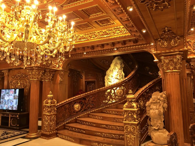Bên ngoài căn nhà được sơn màu trắng, trang trí họa tiết hết sức công phu, hoa văn tinh xảo. Nội thất bên trong căn nhà cũng rất sang trọng và toát lên vẻ xa hoa, đắt tiền. Tất cả đều được làm theo phong cách Châu Âu cổ điển, với hai tông màu chủ đạo là nâu, vàng, nhiều chi tiết được dát vàng. Sàn nhà được lát đá, phía trên trần nhà hoa văn trang trí được mạ vàng sáng rực. Tất cả mọi ngóc ngách trong ngôi nhà đều được trang trí phù điêu họa tiết tỉ mỉ.