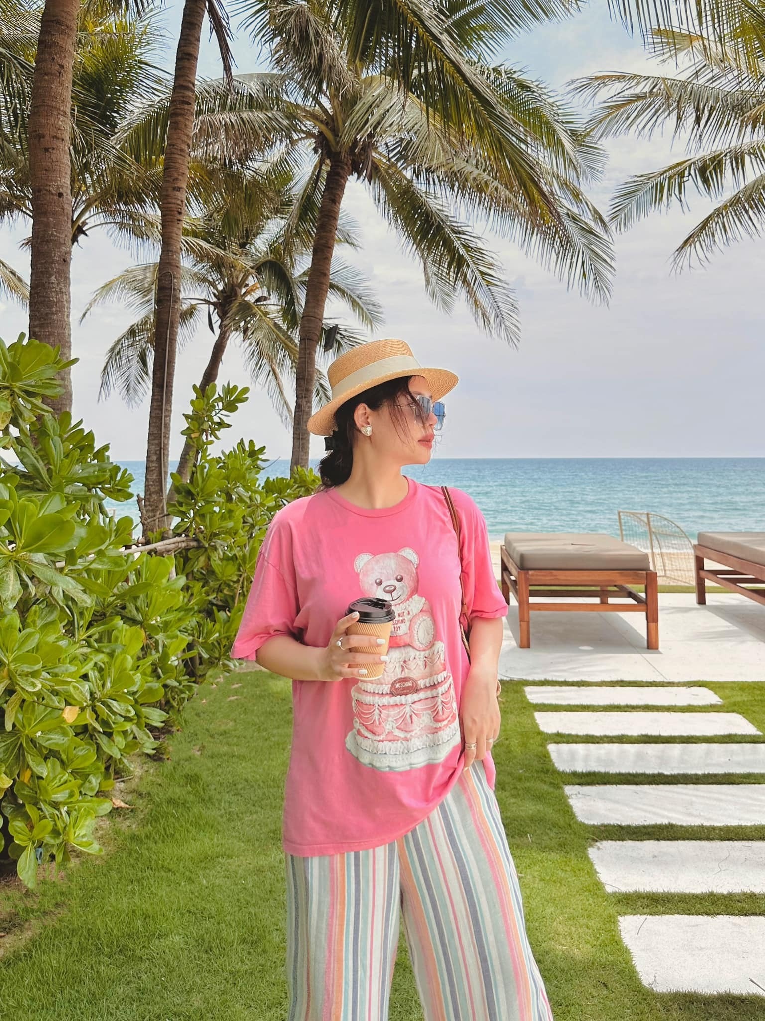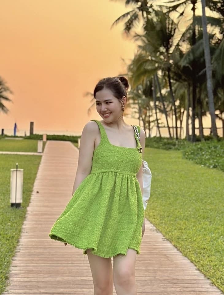 Thực tế, mỹ nhân VTV có nhiều cách phối hợp với đồ màu sắc nhưng vẫn rất xinh. Cô áp dụng nguyên tắc mặc đồ rộng rãi nhưng không hề luộm thuộm mà rất "xì tin" và sang. Vì mặc đồ rộng rãi nên cô tối giản hết cỡ những chi tiết cắt may hay hoạ tiết rườm rà. Người đẹp nhấn nhá cho set đồ với nhiều món phụ kiện đắt tiền. Đó là lí do, nhìn cô mặc áo phông, quần đùi trơn màu thôi cũng hút mắt.