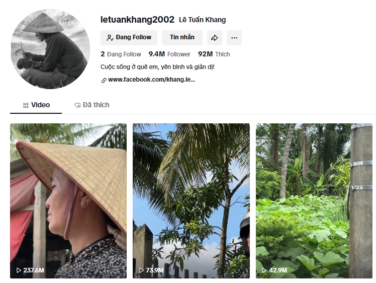 Trên thực tế, Lê Tuấn Khang chỉ sở hữu duy nhất một kênh TikTok có địa chỉ ID “letuankhang2002” với 9.2 triệu người theo dõi. Ngoài ra, anh chàng còn sở hữu 1 fanpage Facebook có hơn 1 triệu follower, 1 Facebook cá nhân có hơn 130 nghìn người theo dõi. Đồng thời, tại nền tảng YouTube, Lê Tuấn Khang cũng có một kênh riêng mang tên mình với 208 nghìn người đăng ký. Và dĩ nhiên, với độ nổi tiếng vẫn chưa hề có dấu hiệu hạ nhiệt, các tài khoản này của chàng trai chăn vịt vẫn đang tăng lên với tốc độ chóng mặt.