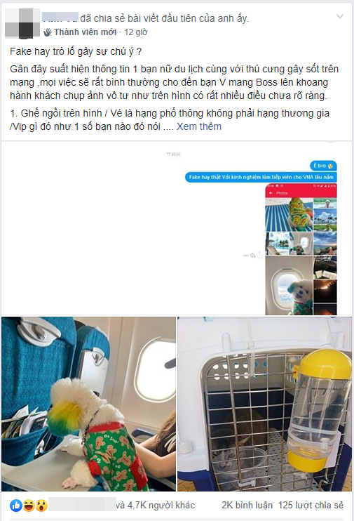 Cứ tưởng câu chuyện đến đó là xong xuôi, nào ngờ mới đây, một dân mạng có tên A.V đã thẳng thắn cho rằng việc làm của V.Đ là không đúng quy định của hãng hàng không. Theo đó người này đã chỉ ra hàng loạt điểm chưa rõ ràng trong những bức ảnh chụp thú cưng trên máy bay của cô nàng: