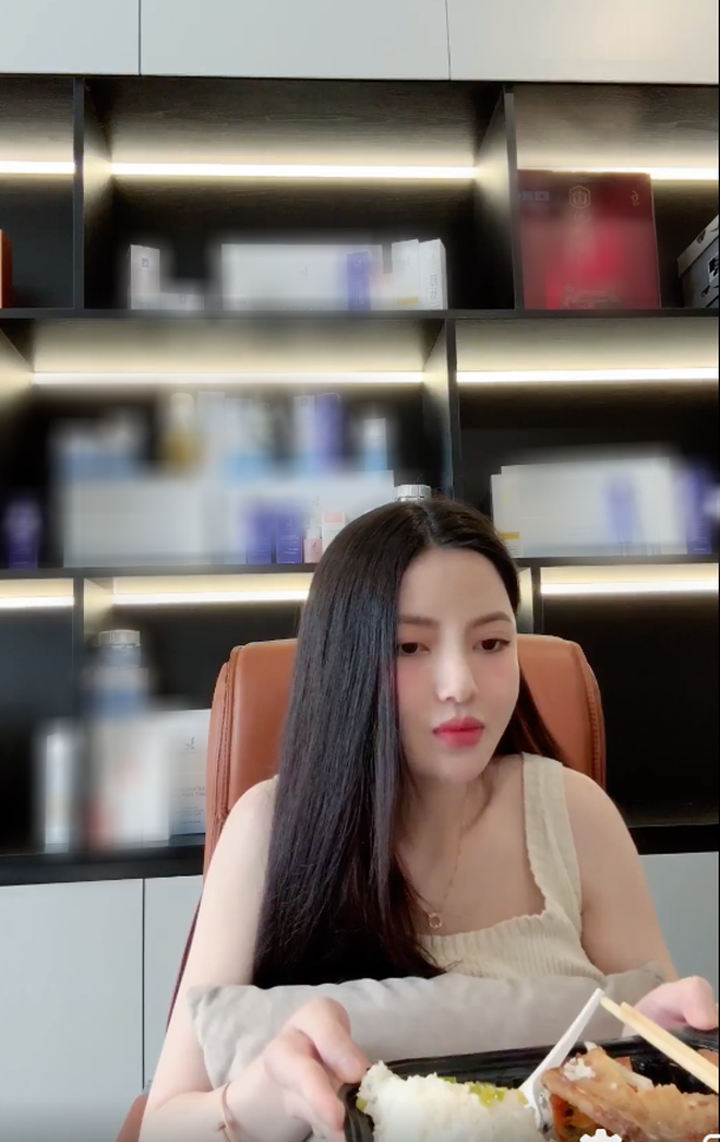 Lộ diện trong buổi livestream mới nhất giữa lùm xùm ảnh cưới, Chu Thanh Huyền cũng thể hiện sự mệt mỏi vì thị phi. Bà xã Quang Hải khiến netizen bất ngờ khi tiết lộ làm việc từ sáng không ăn gì, đói đến mức ù tai. Do vậy, cô xin phép khách hàng cho mình được ăn cơm hộp ngay trên sóng livestream. Song, Chu Thanh Huyền vẫn không thể ăn uống thoải mái, chỉ dám ăn từng thìa nhỏ vì sợ ảnh hưởng đến cảm giác của người xem.