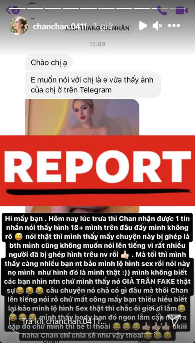Dù rằng đoạn clip này chưa biết thực hư ra sao, dân mạng vẫn không thôi xôn xao bàn tán về vấn đề này. Trước những rắc rối từ trên trời rơi xuống, cuối cùng Xoài Non cũng không thể im hơi lặng tiếng được nữa. Gái xinh 2k2 đã nhanh tay chụp lại ảnh màn hình của một kênh TikTok đưa tin về đoạn clip 17 giây dùng ảnh cũng như tên mình, đăng tải hết lên story cùng những dòng phản pháo cực gắt.