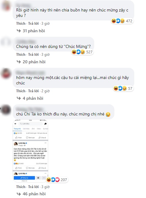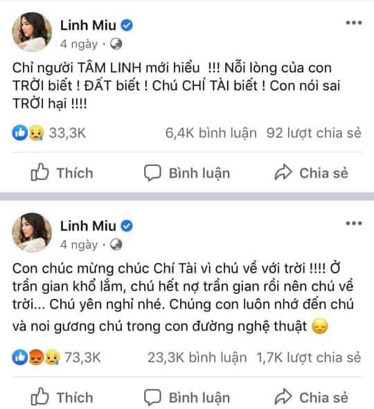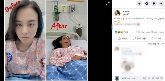 Bức ảnh Linh Miu nhập viện thương tích đầy người được chia sẻ khắp nơi trên mạng xã hội. Nhiều người cho rằng, Linh Miu bị hành hung sau phát ngôn "chúc mừng" khi nghệ sĩ Chí Tài qua đời gây phẫn nộ.