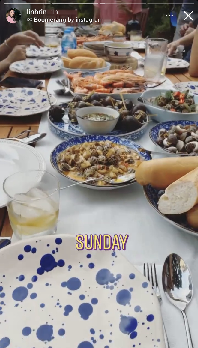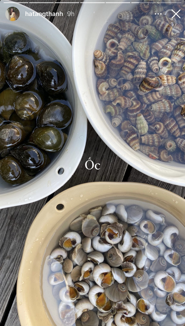 Trước đó, Hà Tăng cũng chia sẻ hình rất nhiều loại ốc chưa qua chế biến. Có vẻ như nữ diễn viên đã dành cả buổi sáng để chuẩn bị cho bữa tiệc chiều nay nhằm thiết đãi mọi người cũng như em dâu tương lai Linh Rin.