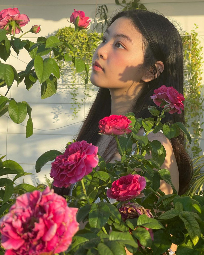 Nhưng trước khi ngắm loạt ảnh của Lọ Lem cũng phải kể công của mẹ Dạ Thảo. Bà xã MC Quyền Linh cực mát tay trong khoản trồng trọt, vì vậy mà khu vườn trong căn biệt thự được định giá 21 tỷ của gia đình lúc nào cũng ngập hoa trái, đặc biệt nhiều hoa hồng. Có background xịn xò thế này, Lọ Lem càng thêm xinh là đúng rồi.