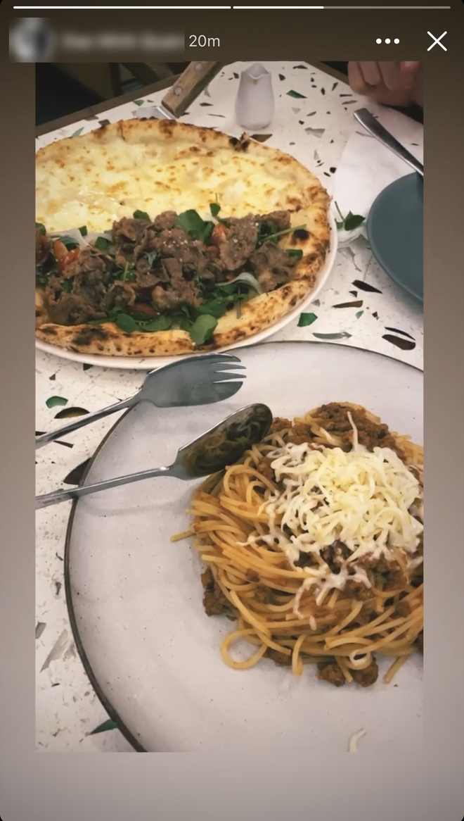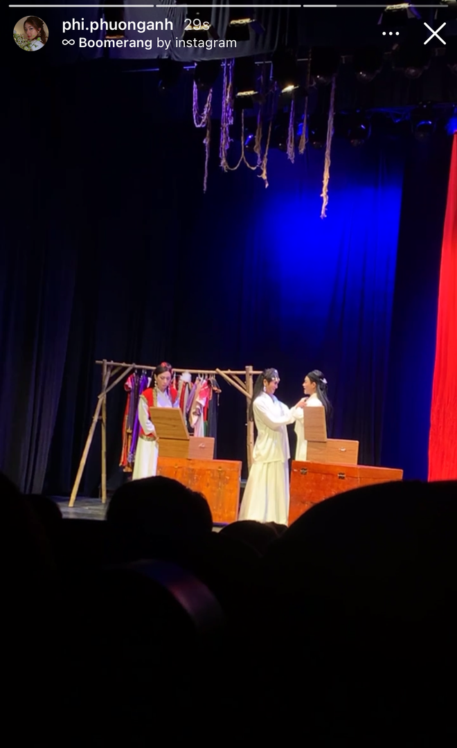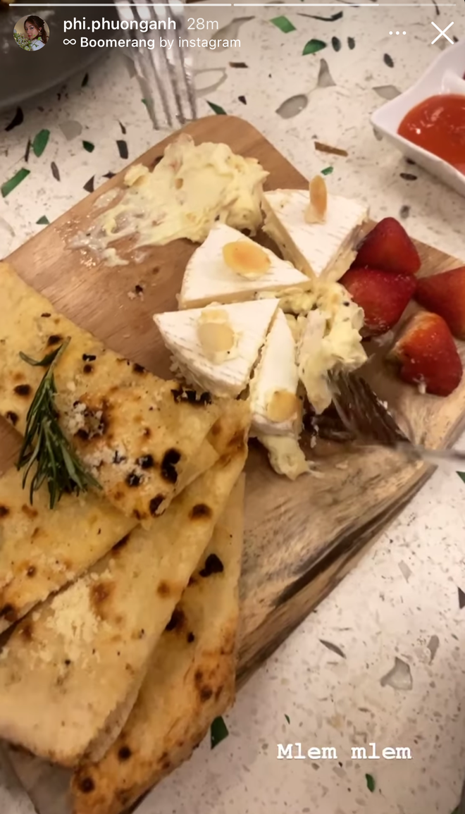 Cụ thể, người mẫu họ Phí đã chia sẻ story đi ăn món Âu, sau đó là đi xem show diễn kịch có sự tham gia của Hải Triều, BB Trần. Nhưng trùng hợp làm sao, cùng thời điểm đó, M.Q - bạn trai tin đồn của cô cũng đăng tải những hình ảnh với bối cảnh giống y hệt.