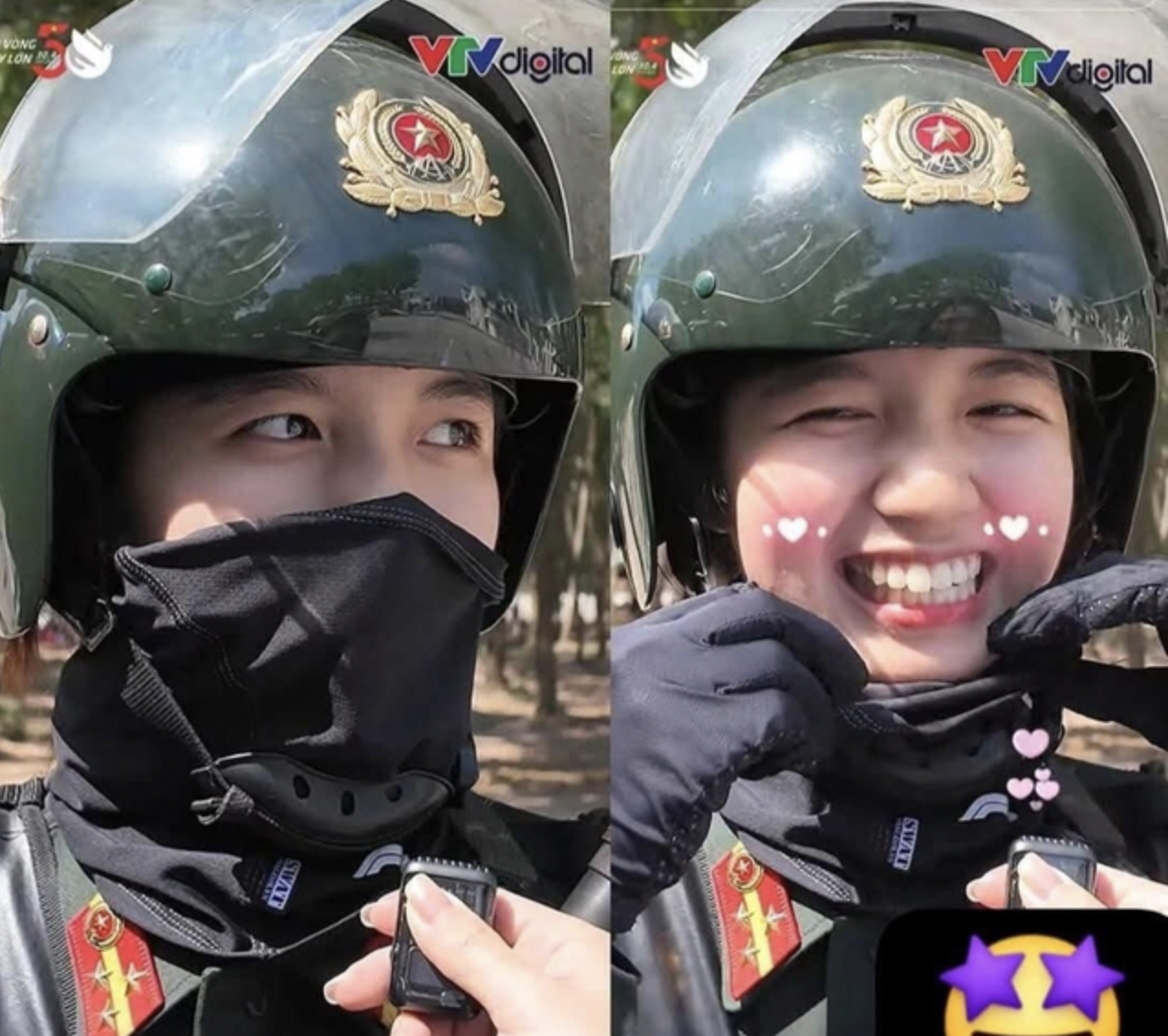 Nhắc đến các chiến sĩ nữ tham gia diễu binh 30/4, không thể bỏ qua cô nàng Nguyễn Bảo Chinh (SN 2004, quê ở Nha Trang) - học viên năm 3 Đại học Cảnh sát Nhân dân, đi diễu binh trong Khối nữ Cảnh sát Đặc nhiệm. Khoảnh khắc rơi khẩu trang khi đang được phỏng vấn của cô đã viral khắp nơi, khiến người xem xao xuyến vì vẻ ngoài dễ thương, dịu dàng ngay cả khi đang khoác trên mình quân phục.