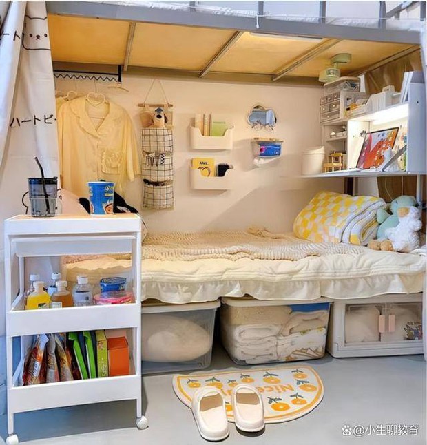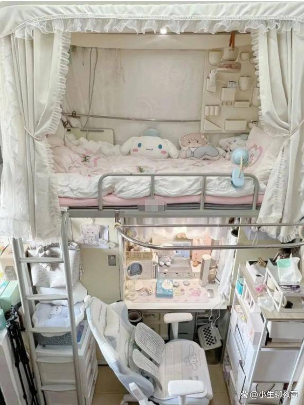 Thế nhưng đó chỉ là câu chuyện của trước đây. Ngày nay, để cuộc sống ký túc xá thoải mái hơn, nhiều sinh viên đã cải tạo lại chiếc giường tầng và không gian của mình. Đặc biệt, các nữ sinh viên đại học có khả năng sáng tạo có thể "hô biến" vài mét vuông chật hẹp thành không gian sống xịn xò.