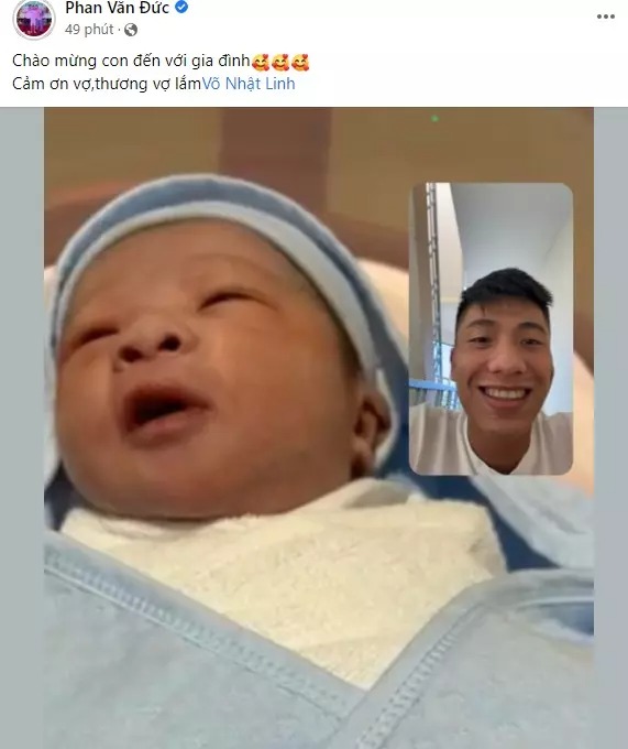 Ngày 6/4 vừa qua, Phan Văn Đức hào hứng thông báo tin vui bà xã Võ Nhật Linh đã hạ sinh con trai thành công.