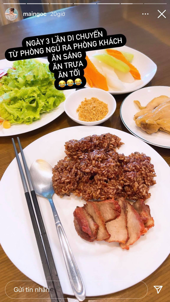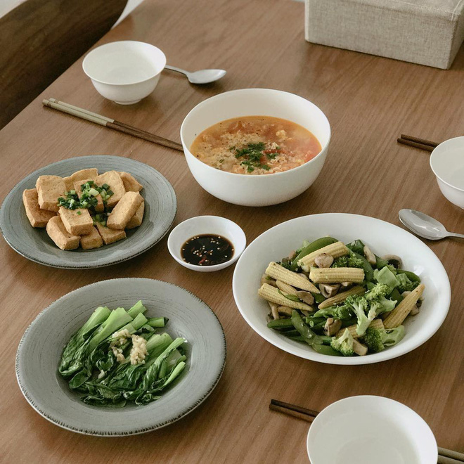 Bình thường, cô nàng thường ăn uống theo eat clean để giữ dáng nhưng khi cần thì vẫn có liền một mâm cơm đủ 3 món nhìn là muốn sà vào ăn ngay