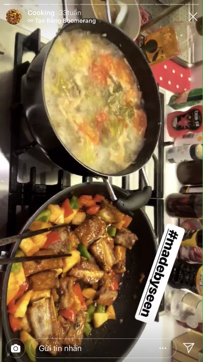 Dù khá bận rộn nhưng chỉ cần có thời gian rảnh, cô nàng vẫn tích cực vào bếp để trổ tài