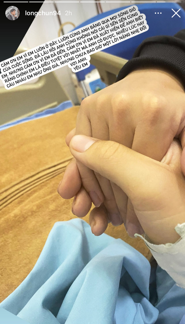 Trên Instagram của mình, Long Chun còn vừa đăng tải một chiếc story gửi đến người đặc biệt. Dù không để lộ mặt người ấy, chỉ khoe ảnh hai bàn tay nắm chặt nhau nhưng đọc từng câu chữ trong bức tâm thư, mọi người cho rằng đây có thể chính là người yêu của anh chàng.