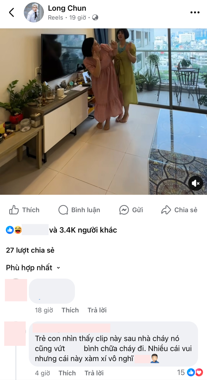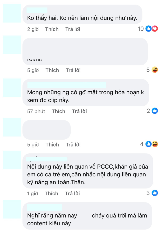 - “Thích một số clip của Long Chun và Tun Phạm nhưng tới clip này thì thấy không phù hợp lắm. Mình nghĩ hỏa hoạn không phải nội dung có thể lấy ra để đùa”.