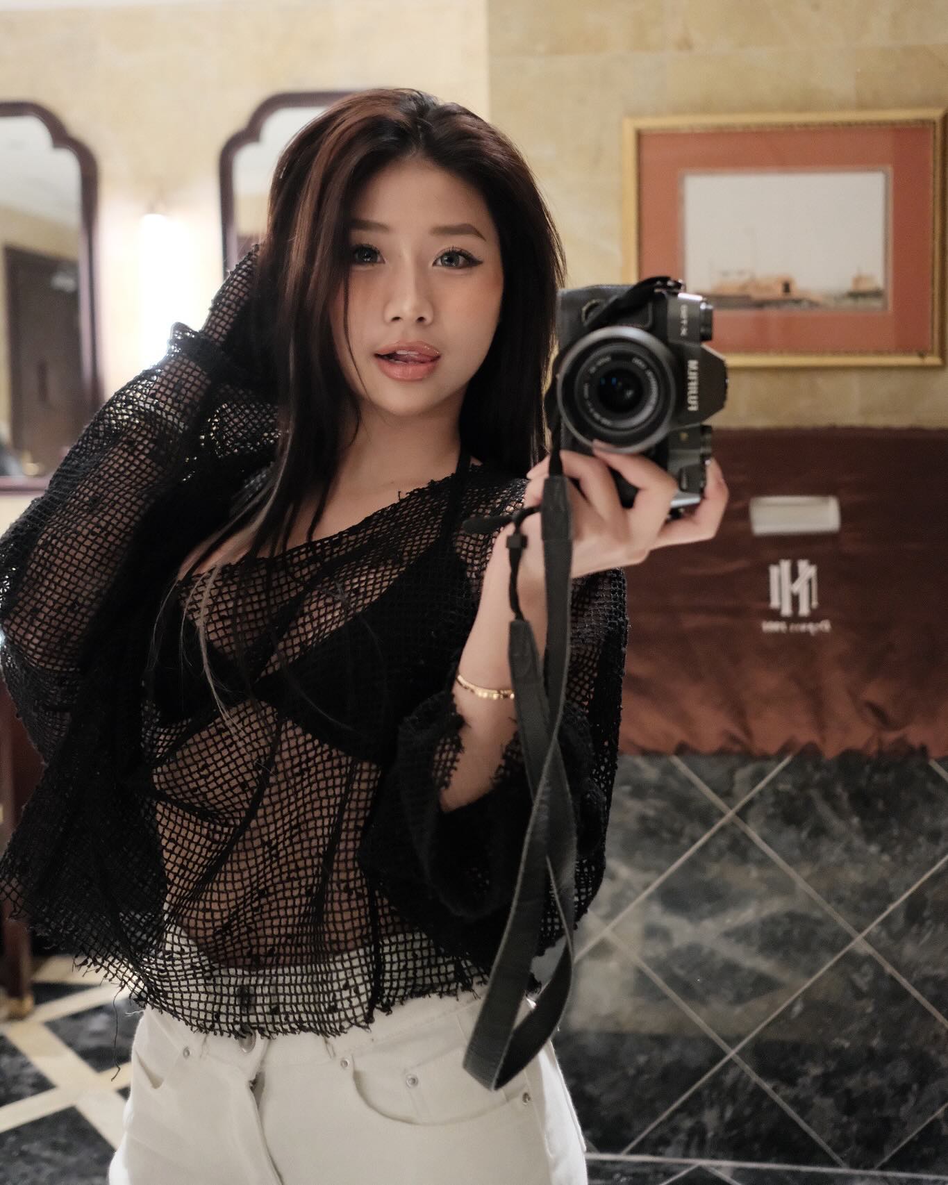 Lễ tình nhân 14/2 vừa qua, dù bạn trai Việt kiều đang ở Mỹ, cựu hot girl TDDC Phạm Như Phương vẫn lên đồ sexy hết nấc đi hẹn hò. Cô nàng diện áo lưới tay dài, trễ vai khoác bên ngoài, lấp ló bên trong là chiếc bra đen giúp nữ TikToker khoe vòng 1 căng đầy - thành quả của phẫu thuật thời gian gần đây.