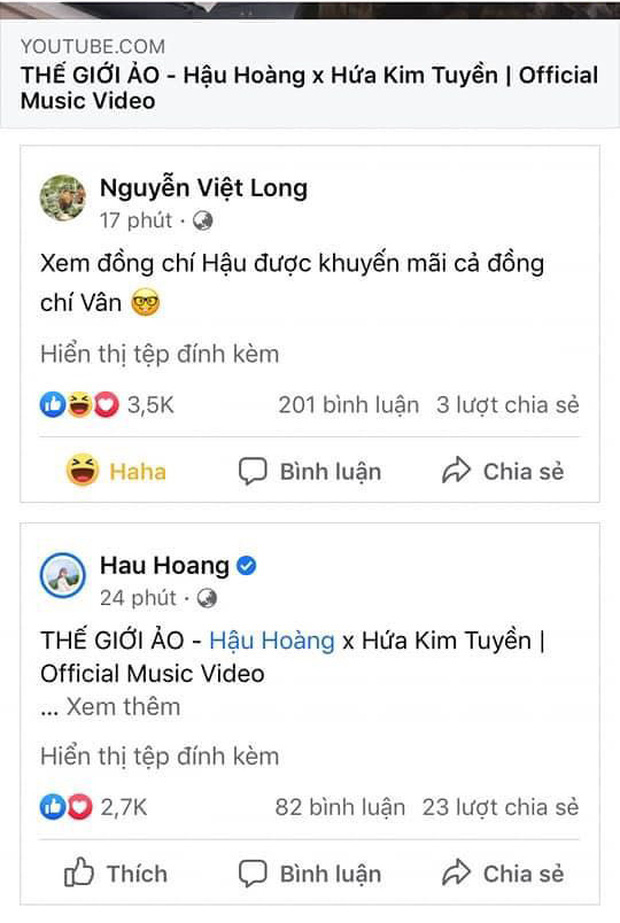 Từ chương trình bước ra ngoài đời, cả hai luôn dành cho nhau rất nhiều sự quan tâm. Mũi trưởng thường xuyên tích cực chia sẻ kéo view cho các MV nhạc chế của Hậu Hoàng