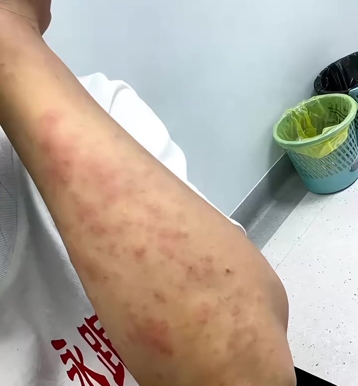 Nhưng đó mới chỉ là những phần đầu tiên của quá trình dị ứng. Sau đó làn da của cô chuyển sang trạng thái mẩn đỏ, sưng tấy và ngứa. Vì ngứa nên Lý Tử Thất phải gãi liên tục mà càng gãi lại càng khiến các nốt mụn nước vỡ ra, trầy xước.