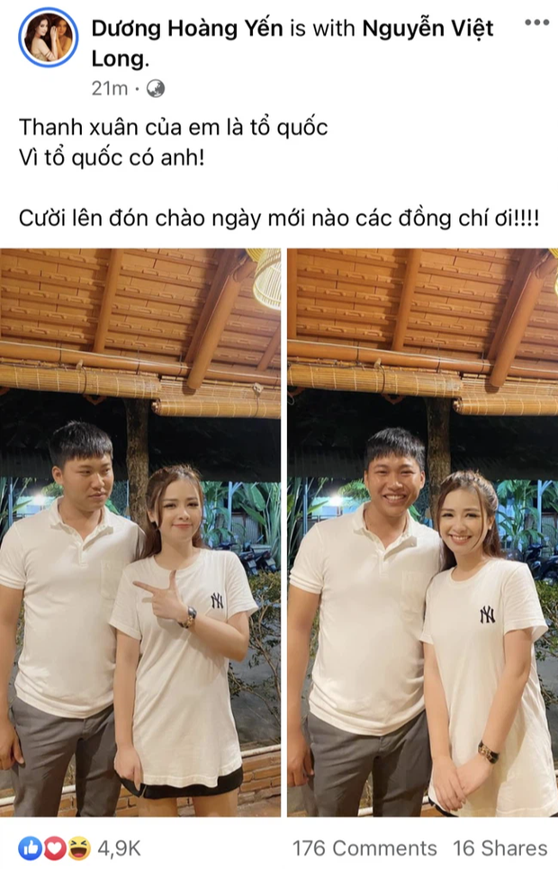 Thế nhưng, người ta phát hiện ra, sau bài đó, Mũi trưởng Long làm gì cũng trong âm thầm nhưng anh không chỉ tương tác với mỗi Hậu Hoàng. Một cái tên khác cũng được đồng chí Mũi trưởng thường xuyên bình luận hay thả tim "dạo" chính là Dương Hoàng Yến.