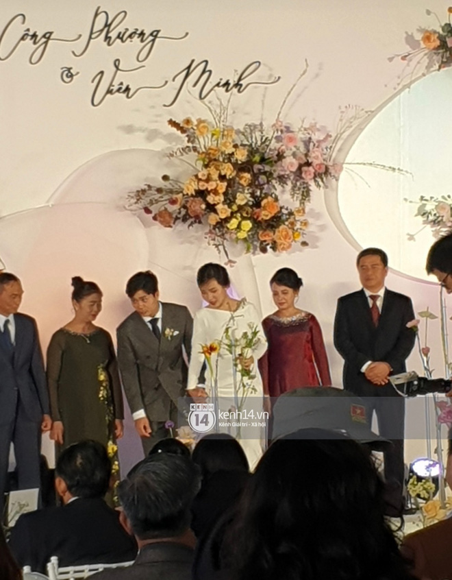 Lễ cưới dù được tổ chức ở quê song tính bảo mật vẫn rất cao. Cô dâu Viên Minh chỉ lướt qua khung hình của phóng viên, fan hâm mộ. May mắn thì người cầm máy mới bắt được khoảnh khắc từ phía sau, góc nghiêng hay hình ảnh xa xa của vợ Công Phượng.
