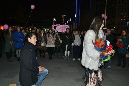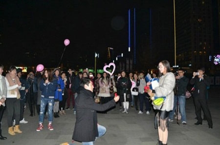 Được biết, chàng trai đã chuẩn bị công phu từ bóng bay, hoa, nến, những hình trái tim lãng mạn. Bên cạnh đó, chàng trai còn đầu tư cả một màn flash mob vô cùng hoành tráng trên đường phố ở Thành Đô để cầu hôn bạn gái lâu năm của mình.