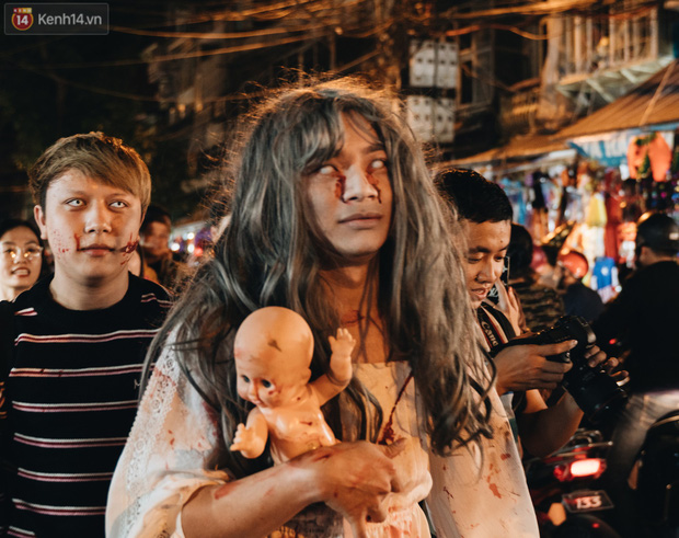 Không hẹn cũng tự lên, đêm Halloween, 2 đầu cầu Hà Nội - Sài Gòn đông nghịt ở những con phố vốn nổi tiếng sôi động. Tại Hà Nội là Hàng Mã, Tạ Hiện, cùng nhiều tuyến phố xung quanh Hồ Gươm; ở TP.HCM thì Bùi Viện cùng những quán bar, pub xập xình - tất cả đều - rất - đông! Và tất nhiên, không ai có thể rời mắt khỏi trai xinh gái đẹp ra đường đu đưa đêm nay rồi.