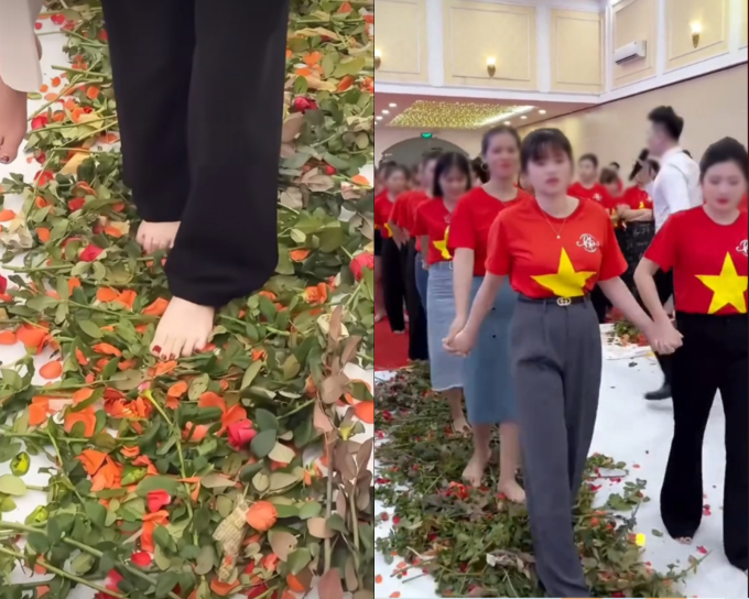 Ngay sau đó, tất cả những nhân viên tham gia sự kiện này đã cùng nắm tay nhau lần lượt bước qua con đường trải thân hoa hồng dài khoảng chừng... 2 mét.