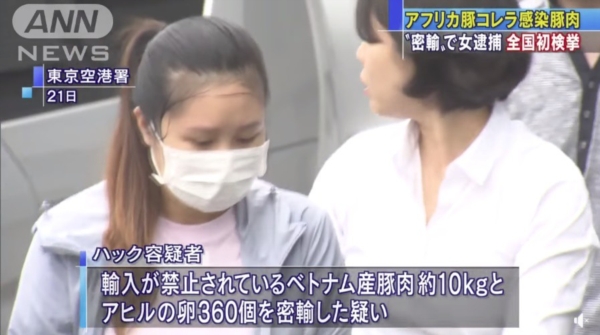 Cụ thể, cô gái đó tên là Hắc Thị Phương Linh, 23 tuổi đã bị nghi ngờ vận chuyển trái phép tới 10kg thịt lợn (có thể là nem chua) và 360 quả trứng vịt lộn đến sân bay Haneda vào tháng trước. Sau khi xét nghiệm, người ta phát hiện trong một phần thịt lợn mà bạn nữ sinh này mang theo còn có cả virus dịch Tả lợn Châu Phi.