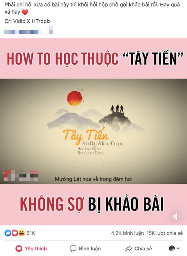 Bởi đã quá quen với bài thơ nên không ai ngờ được rằng khi phổ nhạc, "Tây Tiến" lại có thể thú vị và lãng mạn đến như thế. Trên khắp các trang MXH, cư dân mạng đang rần rần truyền tay nhau một bản phối "Tây Tiến" cực bắt tai được sản xuất và thể hiện bởi nhóm bạn trẻ Bùi Ngọc Mỹ An, Ngô Xuân Hiếu và Đoàn Vũ Dũng, trong đó Mỹ An là một nữ sinh chỉ mới 17 tuổi.