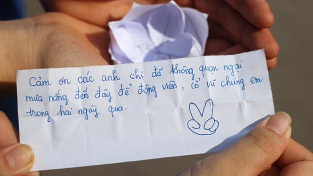 "Cảm ơn các anh chị đã không quản ngại mưa nắng đến đây để động viên, cổ vũ chúng em trong 2 ngày qua" - cô nữ sinh viết trong lá thư.