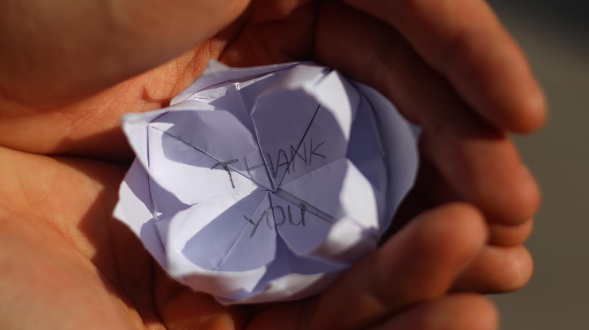 Theo đó, sau buổi thi môn tiếng Anh chiều nay, 1 thí sinh nữ đã chạy lại tặng cho nhóm TNV lá thư cảm ơn và 1 bông hoa gấp bằng giấy có ghi chữ "Thank you". Trong lá thư, những nét chữ nắn nót, ngay ngắn của cô nữ sinh gửi đến nhóm TNV lời cảm ơn rất dễ thương vì suốt 2 ngày thi vừa qua đã luôn động viên, cổ vũ cho mình và các bạn thí sinh khác.