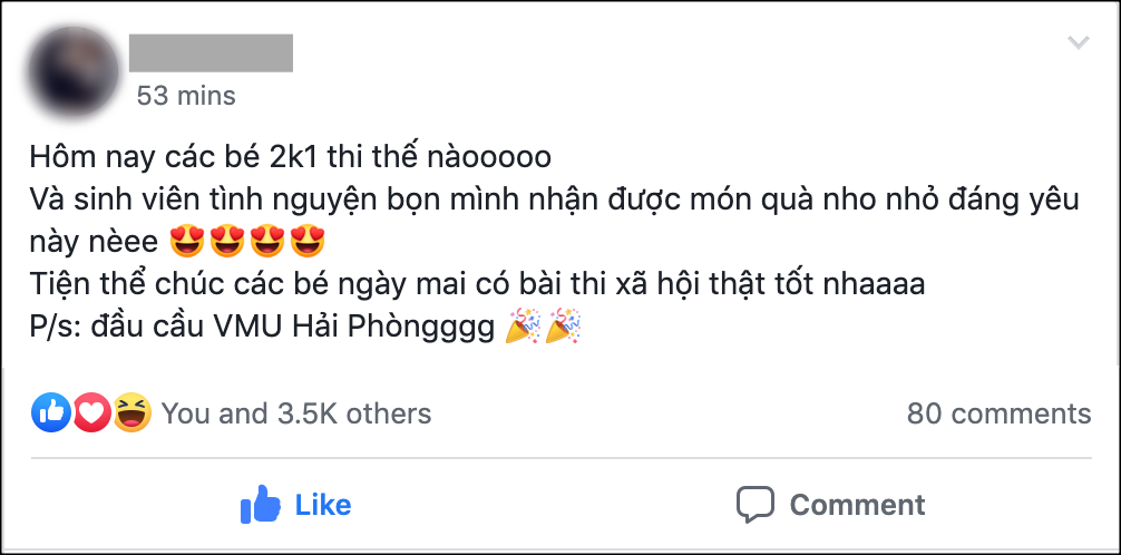 "Chắc bạn này cũng làm được bài nên là vui vẻ đi cảm ơn đội tình nguyện thế này đấy. Chúc mừng bạn nhé, làm bài tốt lại có tâm hồn dễ thương" - bạn N.L viết.