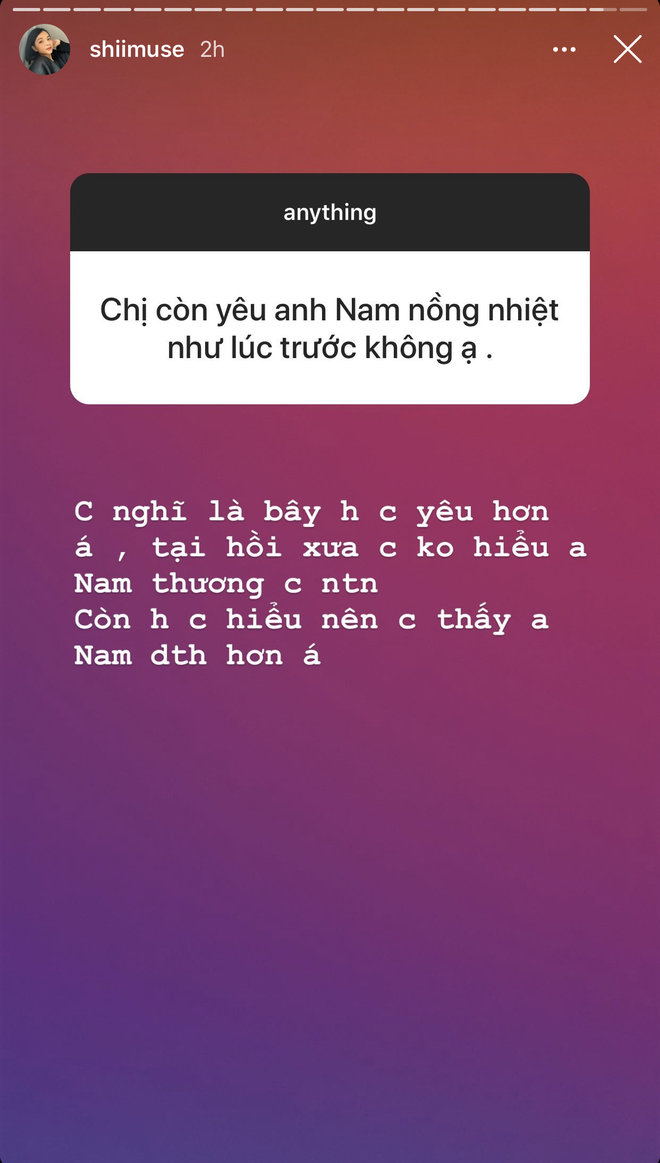 Nói chứ chị cũng không phải kiểu người mà người ta có người yêu rồi vẫn nói chuyện, vì chị hiểu cảm giác đó mà".
