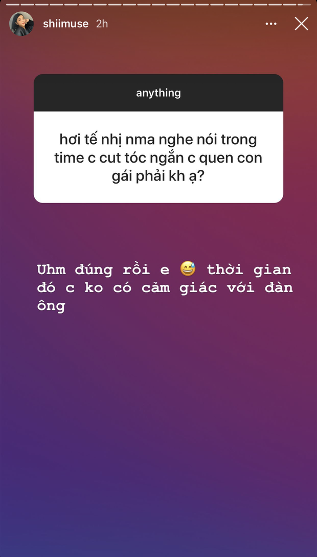 Cũng thông qua trò hỏi đáp này, Mây còn tiết lộ trong thời gian nổi loạn, cắt tóc ngắn hậu chia tay Khói, Mây từng hẹn hò với một cô gái. Lý do được cô nàng đưa ra là vì "thời gian đó không có cảm giác với đàn ông".