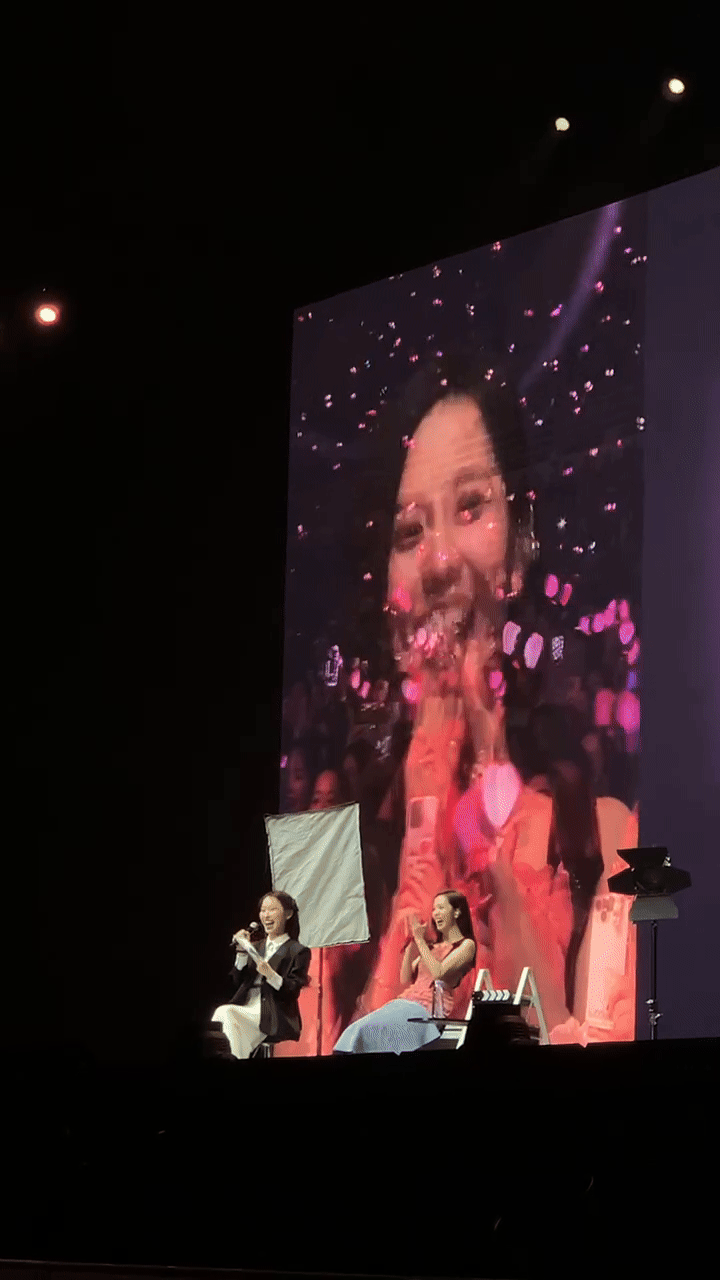 | Khoảnh khắc Khánh Vy nói tiếng Hàn, tiếng Anh khi dẫn dắt trong sự kiện fanmeeting của Jisoo tại Hà Nội ngày 30/3 đang gây tranh cãi trên MXH (Nguồn: @hanee) |