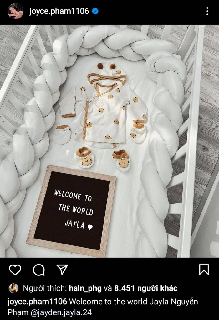 Sau khi kết hôn, cặp đôi Joyce Phạm - Tâm Nguyễn nhận được nhiều sự chú ý của khán giả về độ giàu nứt vách cũng như chịu chi cho đám cưới của mình. Đặc biệt gây chú ý hơn nữa khi "hot mom Gen Z" khoe chuyện mang thai con gái thứ hai. Sau khi "mẹ tròn con vuông", gia đình người đẹp thêm phần sung túc khi đón thêm ái nữ tên Jayla.