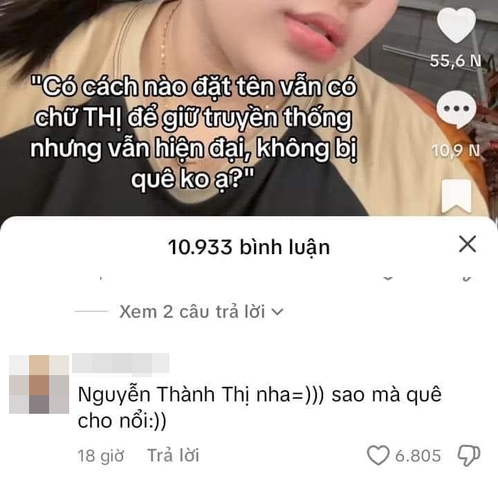 Cực chẳng đã, mẹ bỉm lên mạng mạnh dạn tham vấn mọi người để mong có cái tên thật đẹp cho con gái của mình: "Có cách nào đặt tên vẫn có chữ "Thị" để giữ truyền thống nhưng vẫn hiện đại, không bị quê không ạ?".