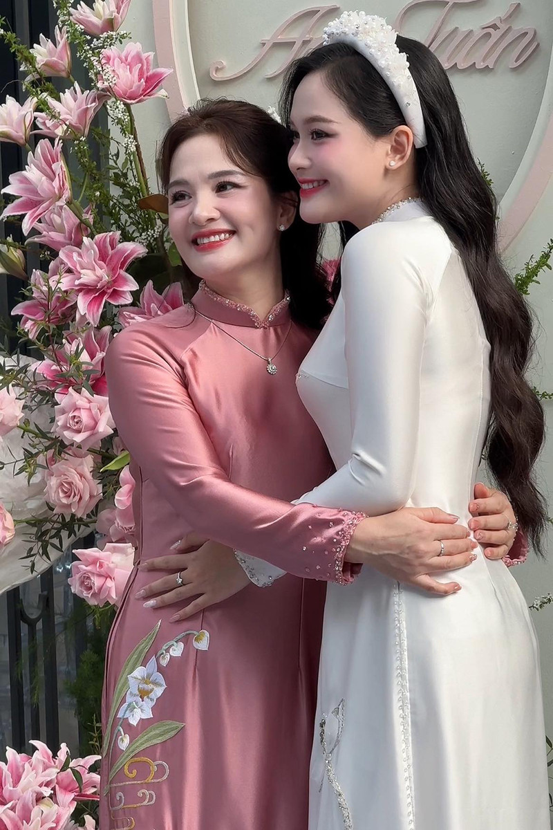 Cùng với vẻ đẹp ngọt ngào của cô dâu 21 tuổi, nhan sắc mặn mà, đằm thắm của bà mẹ cũng gây ấn tượng với người xem.