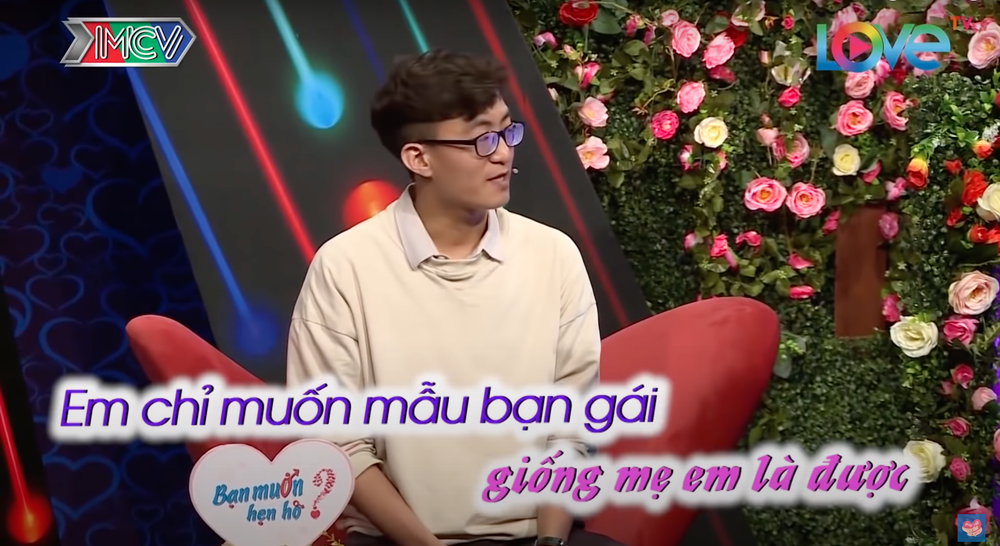 Tới với gameshow hẹn hò, anh chàng muốn tìm mẫu bạn gái giống mẹ mình, nhưng lại khiến cả trường quay "đứng hình" khi tả đó là một người phụ nữ "ngắn chủn", cực kì dễ thương nhưng cũng rất dữ, chửi con nhiều.