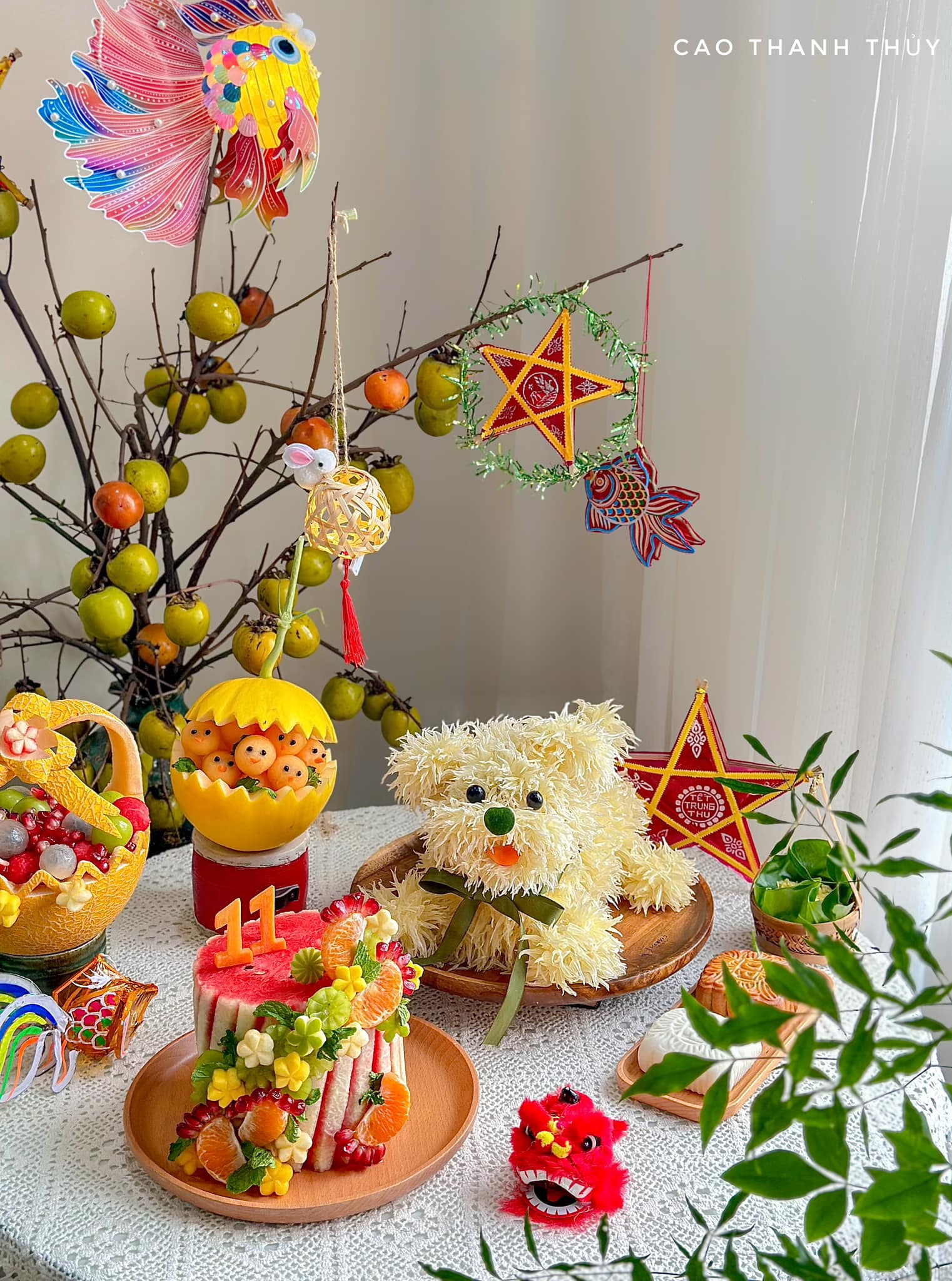 Mới đây, chị Cao Thanh Thủy (sinh năm 1992, sống tại Hà Đông) quyết định làm mâm cỗ Trung thu cho gia đình nhỏ của mình. Cả gia đình ai ai cũng háo hức, từ người lớn đến trẻ nhỏ đều mong ngóng chị Thủy trang trí, bày biện cho bữa tiệc nhỏ. Thành phần xinh xắn đến nỗi chẳng ai nỡ ăn.