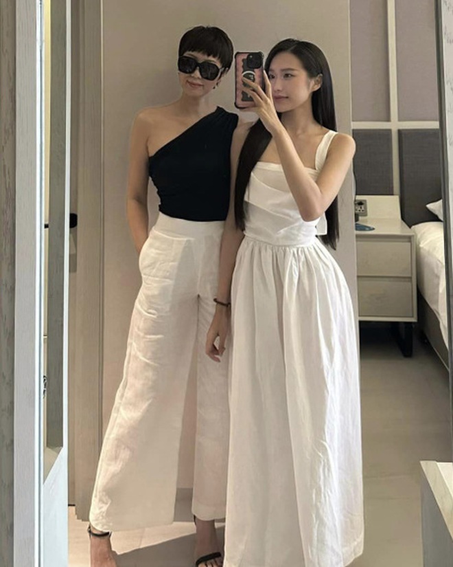 Không chỉ bởi vì thần thái sang chảnh ngút ngàn, vóc dáng mảnh mai ở độ tuổi U50, mà còn ở nhan sắc trẻ mãi không già và sự thời thượng như chị em khi đứng cạnh con gái. Netizen cũng không tiếc dành lời khen cho mẹ ruột của Doãn Hải My suốt từ đám cưới đến giờ.
