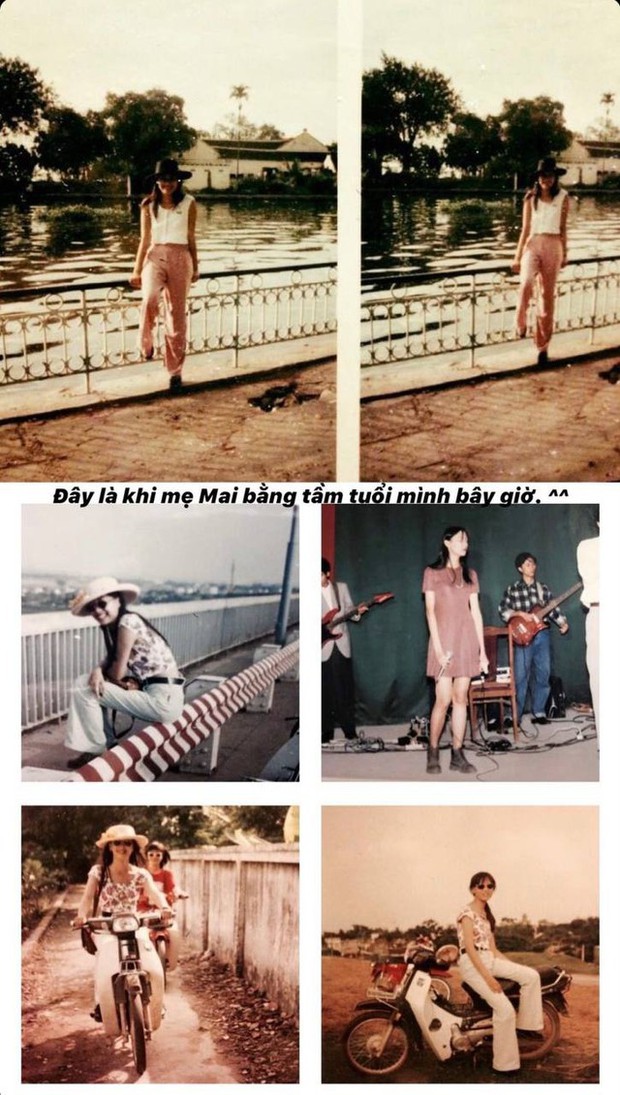 Mới đây nhất, bộ ảnh thời 20 của cô Mai Đoàn bỗng hot lại nhờ chiếc story của con gái. Hải My viết "đây là mẹ Mai bằng tầm tuổi mình bây giờ". Nhìn loạt ảnh "thời đó" mà đã thấy cô Mai Đoàn nổi bật với khí chất như một "tiểu thư", đa tài và sở hữu gout quá đỉnh!
