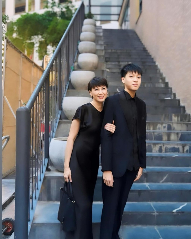 Hôm 22/5, bà Mai Đoàn - mẹ vợ của hậu vệ Đoàn Văn Hậu cùng con trai thứ hai đến dự prom cuối cấp của trường Marie Curie cơ sở Mỹ Đình. "Mẹ vợ" hot nhất làng bóng đá Việt diện chiếc váy đen thắt eo, khoe vóc dáng thanh mảnh, gương mặt trẻ đẹp với nụ cười rạng rỡ. Bà Mai Đoàn xách túi hàng hiệu, thân thiết khoác tay cậu con trai cao lớn Doãn Hoàng Minh.