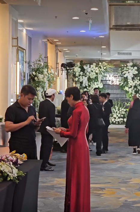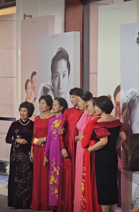 Và trong buổi tiệc ở khách sạn 5 sao, một lần nữa, mẹ vợ Đoàn Văn Hậu khiến cộng đồng mạng chú ý khi chọn chiếc áo dài màu đỏ quý phái.