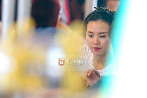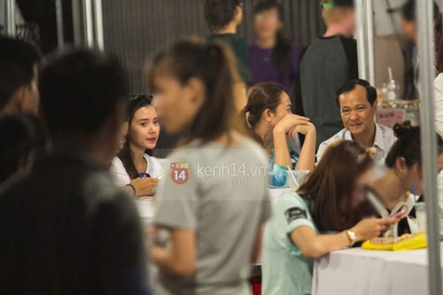 Midu ngồi nghỉ chân và quan sát mọi hoạt động trong sự kiện |