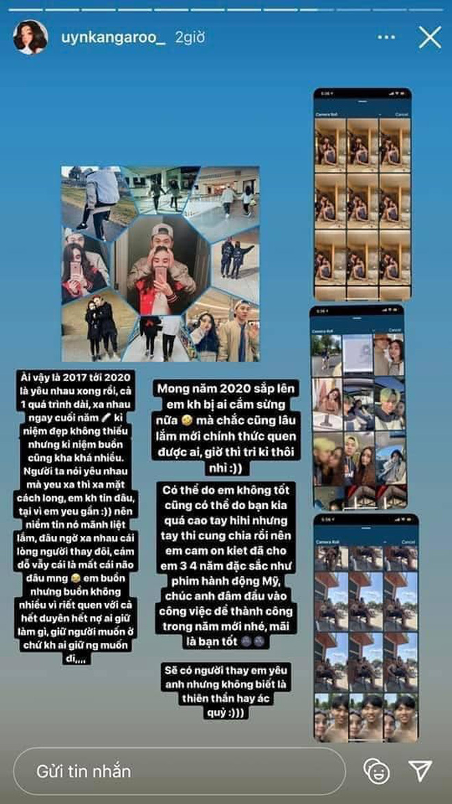 Chưa dừng lại ở đó, dân tình còn phát hiện những tấm ảnh chụp chung lần lượt "bốc hơi", mất tích khỏi instagram của hai người. Thêm nữa, dạo gần đây đằng gái liên tục đăng status tâm trạng, buồn bã. Với loạt bằng chứng này, netizen càng khẳng định cặp đôi đã gặp trục trặc và mâu thuẫn với nhau.