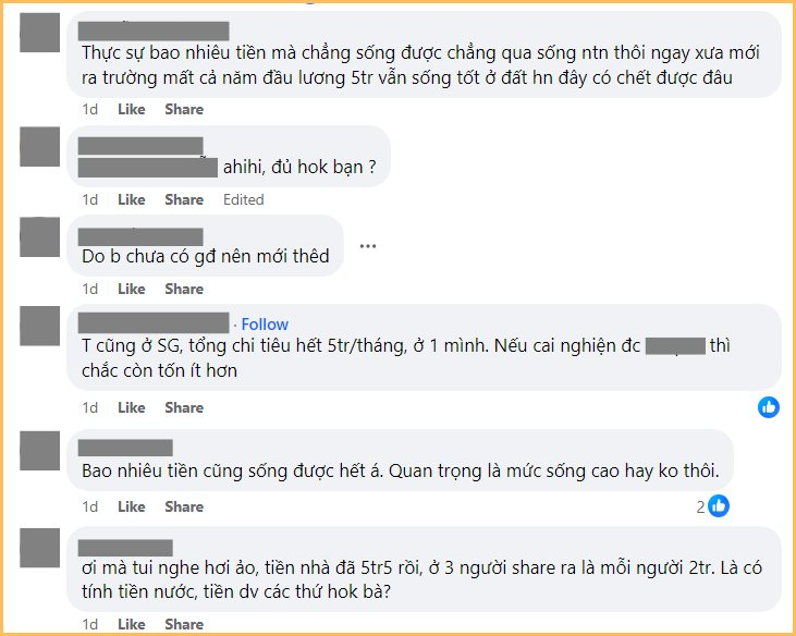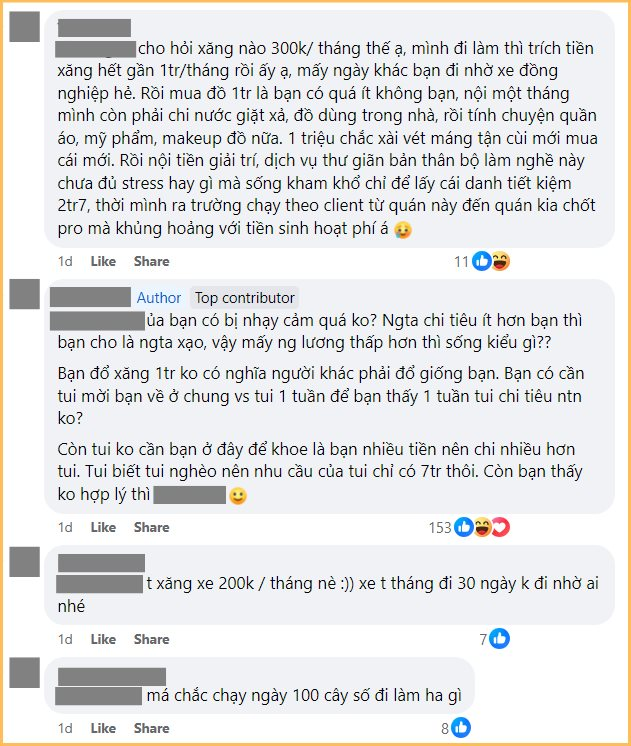 Trong phần bình luận của bài đăng, có người tỏ ra nể phục, ngưỡng mộ cách quản lý chi tiêu của cô gái trẻ; nhưng cũng không ít người cho rằng việc tiết kiệm 2,7 triệu đồng với mức lương 10 triệu khi sống ở TP.HCM là điều không thể.