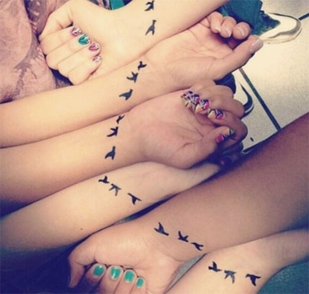 Các cặp đôi, bạn thân, anh chị em thân thiết thường tỏ ra khá thích thú với những hình xăm có sự liên quan, giống nhau theo dạng này. |