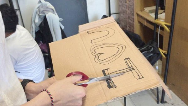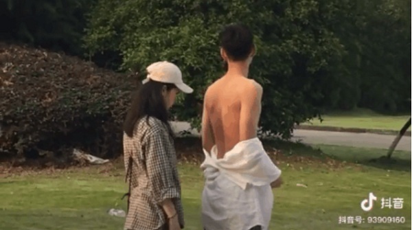 Chàng trai cắt một tấm bìa cứng, viết dòng chữ "I love You" rồi khoét lỗ trống theo các chứ cái. Cuối cùng anh chàng ép miếng bìa cứng đó trên lưng rồi dùng kem chống nắng để bôi vào phần trống đó.