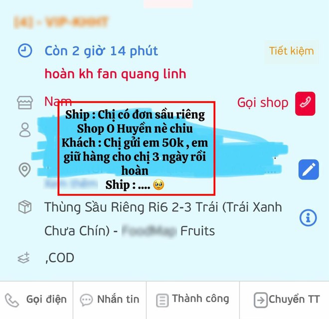 Đỉnh điểm của vụ việc này, vài ngày gần đây, các vị khách mua sầu riêng trong phiên livestream ngày 7/7 đã rủ nhau "bom hàng" (huỷ đơn). Trên MXH đã xuất hiện những bài đăng hoặc bình luận của khách mua và của các shipper nói về tình trạng này.