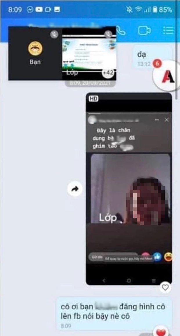 Sau đó, một học sinh cùng lớp thấy bất bình đã... gửi story này để "méc" giáo viên.