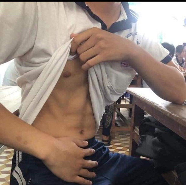 Mới đây, một học sinh khoe chiếc ảnh bạn cùng bàn của mình lên mạng xã hội. Điểm đặc biệt là bức ảnh không lộ mặt, không có góc chụp thuận lợi, không đúng hướng sáng và hơi nhòe một xíu nhưng vẫn thu về 30.000 like, bởi chiếc bụng của chàng trai này đã chiếm spotlight hết rồi.